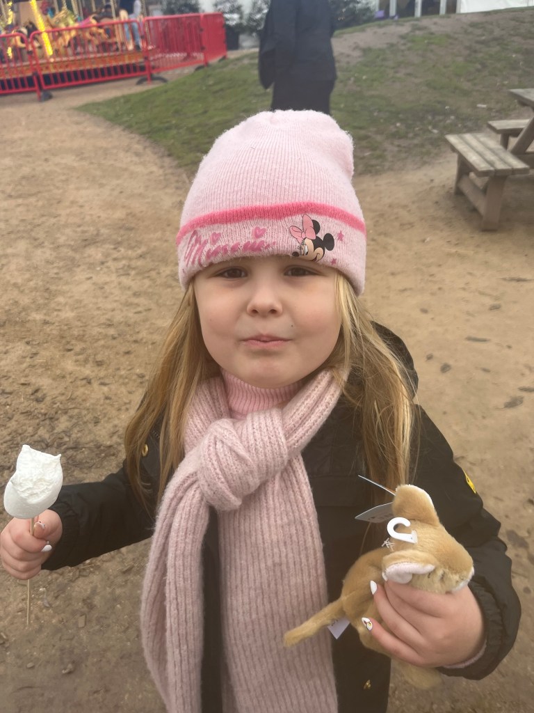 Outside the Oh Crumbs! cafe you’ll find a carousel (this was at an extra cost), frankfurter stall and hot chocolate van if you’re wanting to treat yourself to a festive treat. Head to the hot chocolate van and each child will be able to exchange one of the tokens they’re given on entry for a marshmallow to toast over the fire pit.
